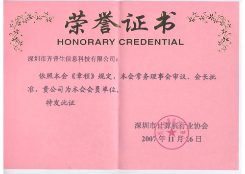• 計(jì)算機(jī)行業(yè)協(xié)會(huì)會(huì)員榮譽(yù)(獎(jiǎng)杯)